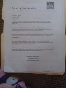 Cabe mencionar que la instructora y directora de la Escuela de Gimnasia Artística de Tecate certificada y avalada por la federación y el estado, Melinda Rodríguez Valenzuela tiene un contrato para utilizar dichas instalaciones, la cual le cuesta una renta mensual y en el cual tiene horarios específicos establecidos para los entrenamientos de las más de 60 atletas. Sin embargo, la otra instructora de nombre Esthela Ontiveros obstinada por causar problemas, quiere entrenar en los mismos horarios, el mismo lugar y con aparatos que le han costado a la instructora Melinda Rodríguez.