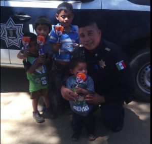 Oficiales encabezaron el festejo del Día del niño dando un recorrido de rutina por la zona centro del Pueblo Mágico; para sorpresa de las familias que se encontraban sobre el primer cuadro de la ciudad, los uniformados, iniciaron el operativo “Regalando una sonrisa” obsequiando un presente a niñas y niños de la localidad y visitantes.