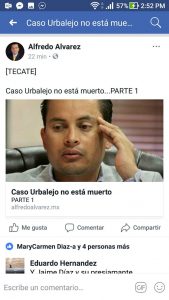 Después de haberse publicado la 1ra. Parte de “Caso URBALEJO no ha muerto” en la página informativa de reconocido periodista en el estado, @Alfredo Álvarez, Doña Honestidades sale en su defensa para dar la cara por URBALEJO e intentar desmentir la nota. https://www.facebook.com/AlfredoAlvarezMX/posts/1659173420807978