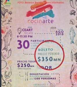 La entrada a COCINARTE, uno de los eventos más tradicionales de Tecate Pueblo Mágico ya no será para toda la ciudadanía, en esta edición de COCINARTE 2018 estará enfocado exclusivamente para un sector de ciudadanos pudientes que deberán pagar $350.00 por persona, solo para degustaciones de platillos gastronómicos, no incluye bebidas o postres.