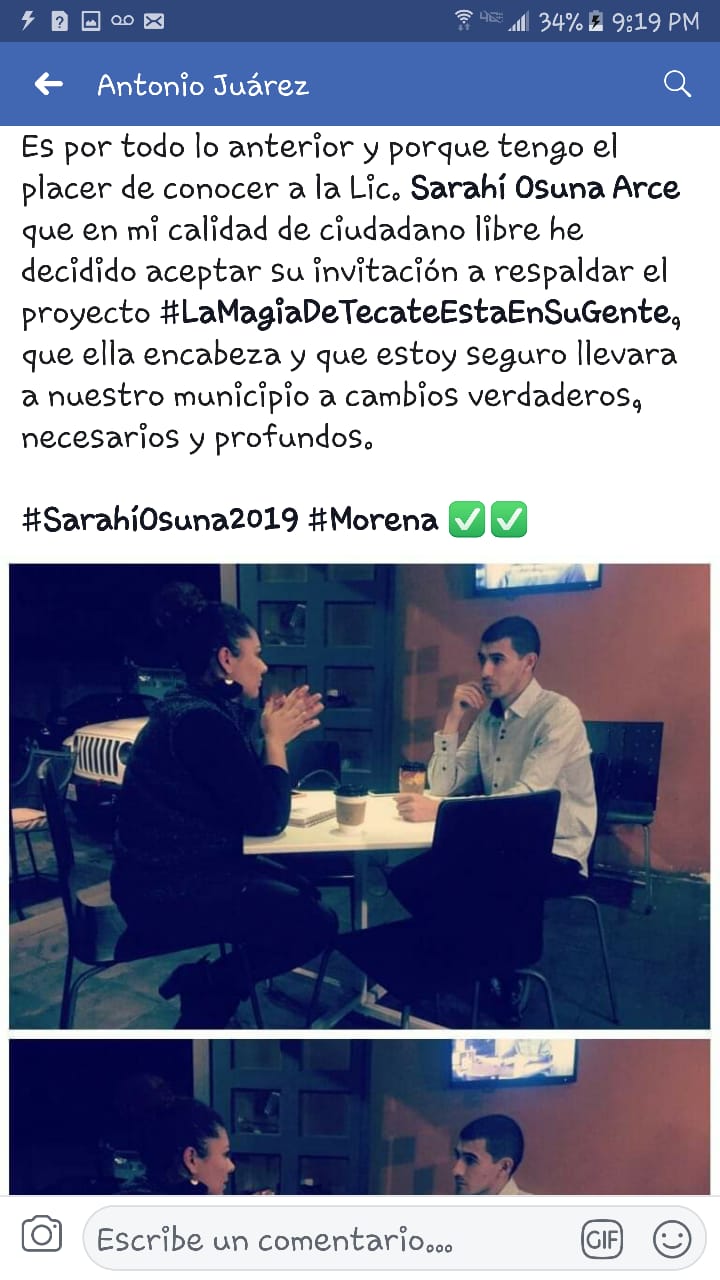 Ahora sí, sale toda la suciedad y el lado oscuro de Antonio Juárez, la mosca muerta, el mustio joven se les puso al tiro a TODOS los de Tecate en Pie de Lucha, lo corren por desfalco y ahora busca refugio en MORENA, con la aspirante y próxima precandidata de ese partido, Sarahi Osuna Arce.