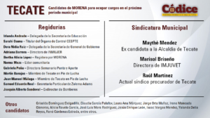 Otros nombres como Adriana Barrera Hernández, directora de INMUJER; la regidora Bertha Alicia López; Laura Ana Márquez, directora del DIF Tecate; Irene Moncada Cisneros, directora de Bienestar Tecate; son algunos de los nombres de quienes aspiran a una regiduría.