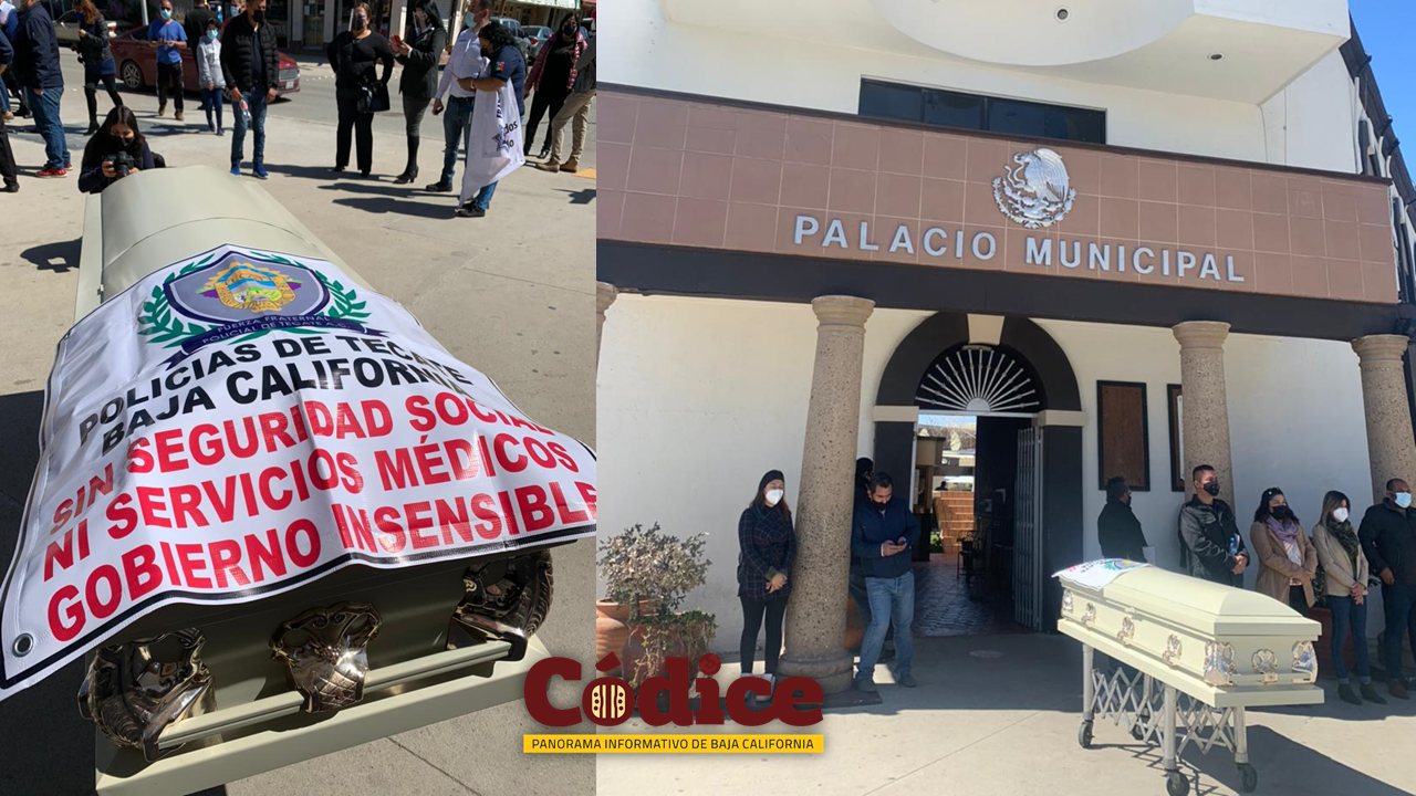 Policías afiliados a diferentes agrupaciones en Baja California, se congregaron en una manifestación a las afueras de Palacio Municipal en Tecate.