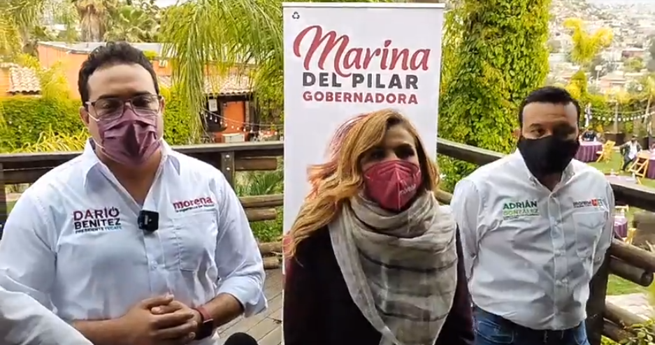 La candidata de Morena a la gubernatura del estado, Marina del Pilar Ávila, el candidato a la Alcaldía de Tecate, Darío Benítez y el candidato del Partido Verde (aunque en coalición con Morena) a la diputación del Distrito VI, César Adrián González.