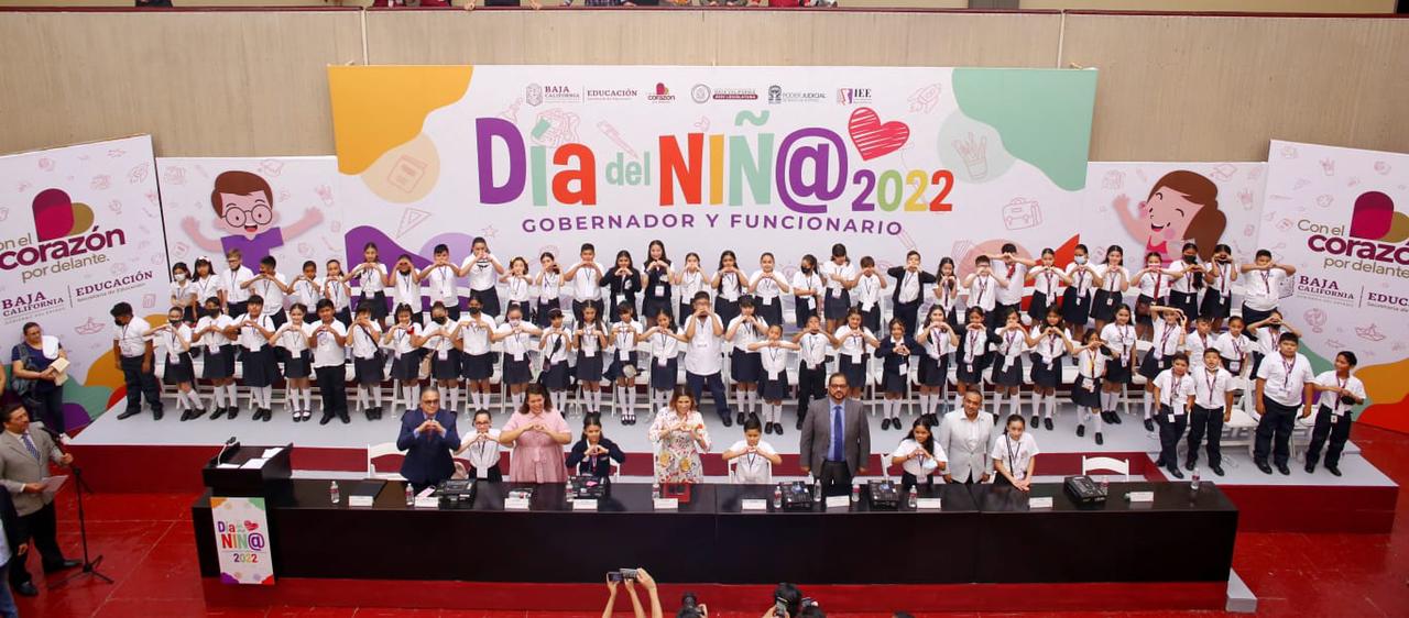 MEXICALI.- Para reconocer la importancia de niñas y los niños y sus sentimientos y opiniones, así como la necesidad de garantizar su derecho a ser felices y tener bienestar, la Gobernadora de Baja California, Marina del Pilar Avila Olmeda, y el Niño Gobernador de Baja California, Santiago Pérez González, encabezaron el evento oficial del “Día de la Niña y el Niño 2022”.