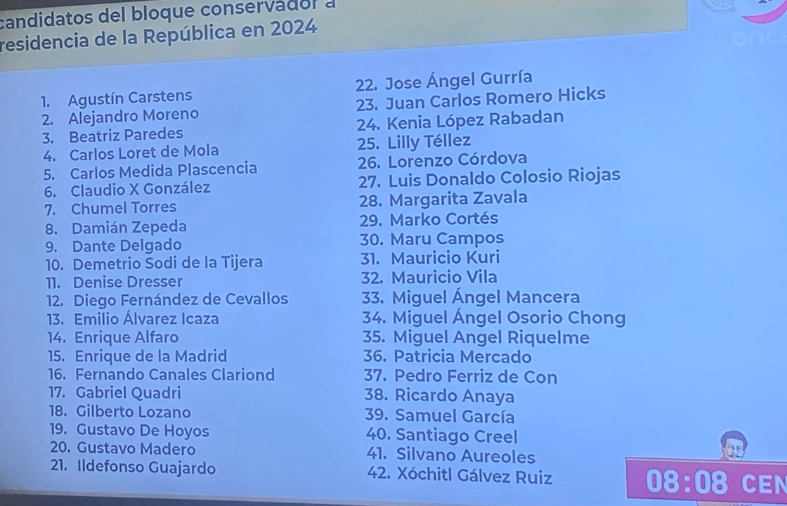 MÉXICO.- El presidente de México, Andrés Manuel López Obrador, presentó en su conferencia matutina, una lista de posibles candidatos de la oposición política rumbo a la elecciones presidenciales de 2024.