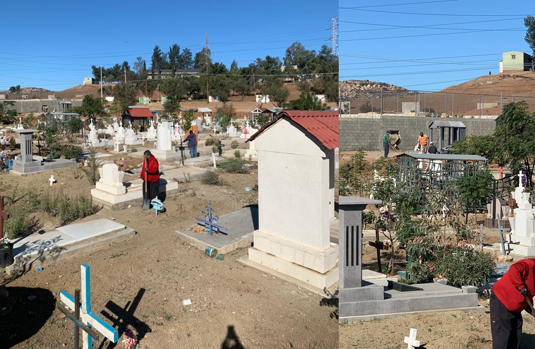 TECATE.- El Gobierno de Tecate a través de la Dirección de Obras y Servicios Públicos Municipales intensificó los trabajos de limpieza y mantenimiento de los panteones previo a la celebración del Día de Muertos, para tener estos recintos en las mejores condiciones posibles para los visitantes.