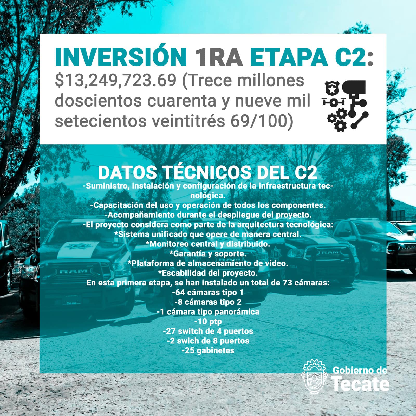 El Centro de Control y Comando Digital (C2) en Tecate, fue inaugurado en una primera etapa el 03 de marzo del 2023 en la administración del 24 Ayuntamiento de la ciudad.