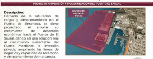 La Secretaría de Marina, a través de Administraciones del Sistema Portuario Nacional en México (ASIPONA) Ensenada. se encargará de la construcción de rompeolas y de planchas de concreto para carga de contenedores sobre zonas de playa.