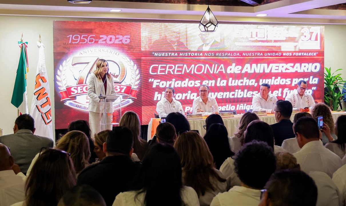 Al conmemorar las siete décadas de la Sección 37, la gobernadora reconoció también el liderazgo de su secretario general, Ampelio Iñiguez Arellano, así como la unidad entre gobierno y sindicato, que permite avanzar con honestidad en la construcción de una sociedad más justa, igualitaria y humana para todas las familias bajacalifornianas.